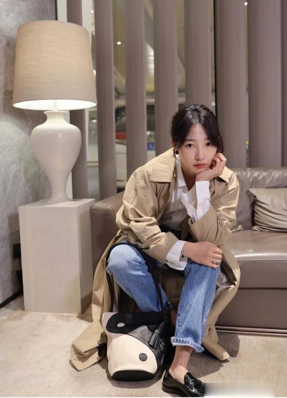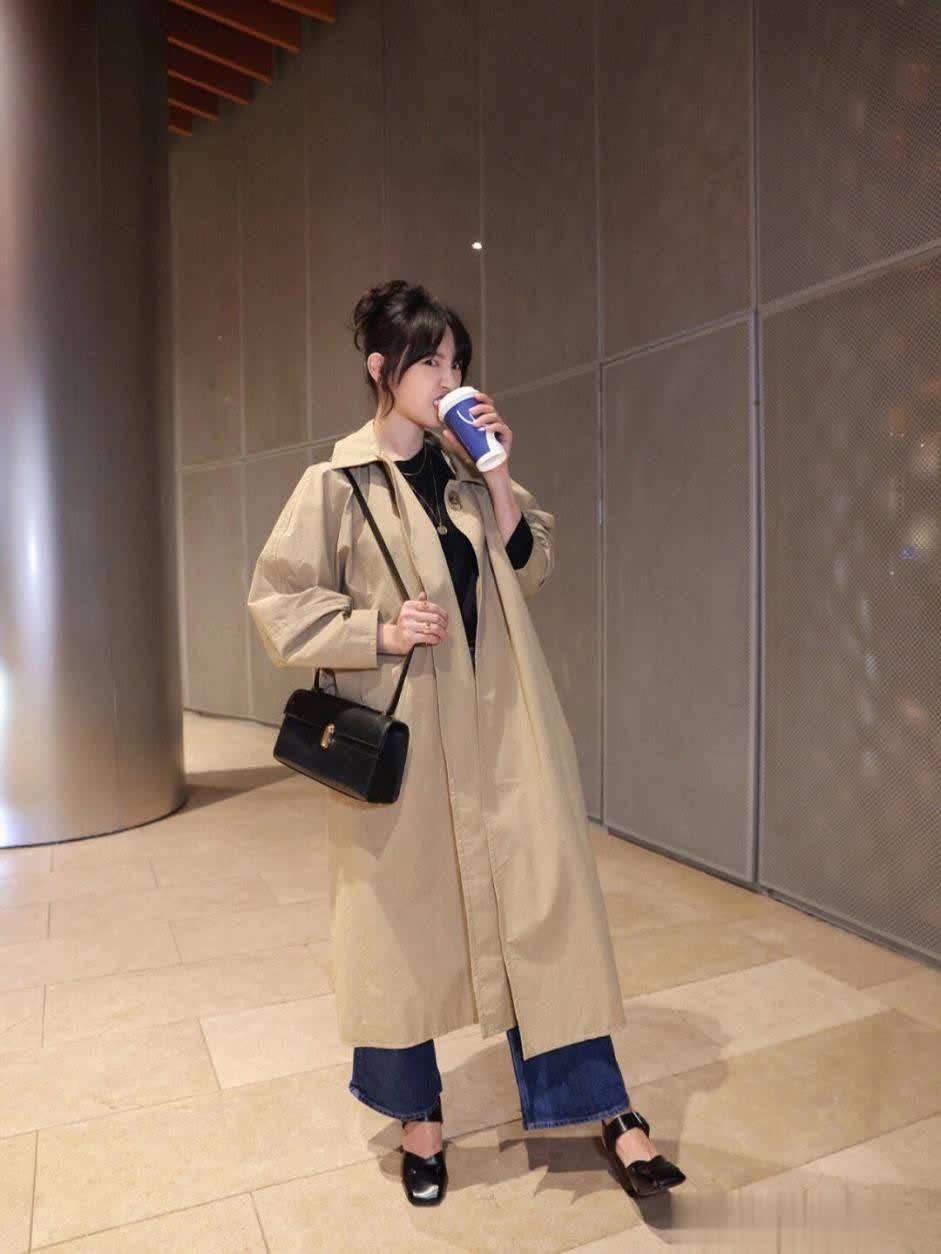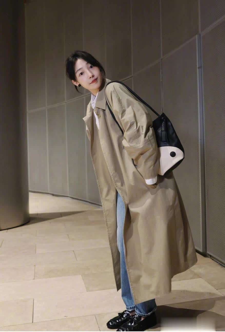 初春爆火穿法!白百何风衣搭衬衫牛仔裤,时髦洋气